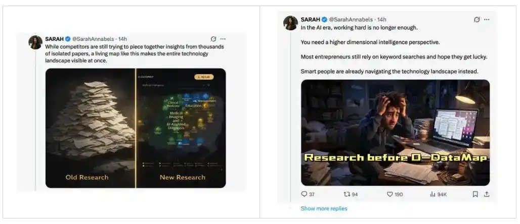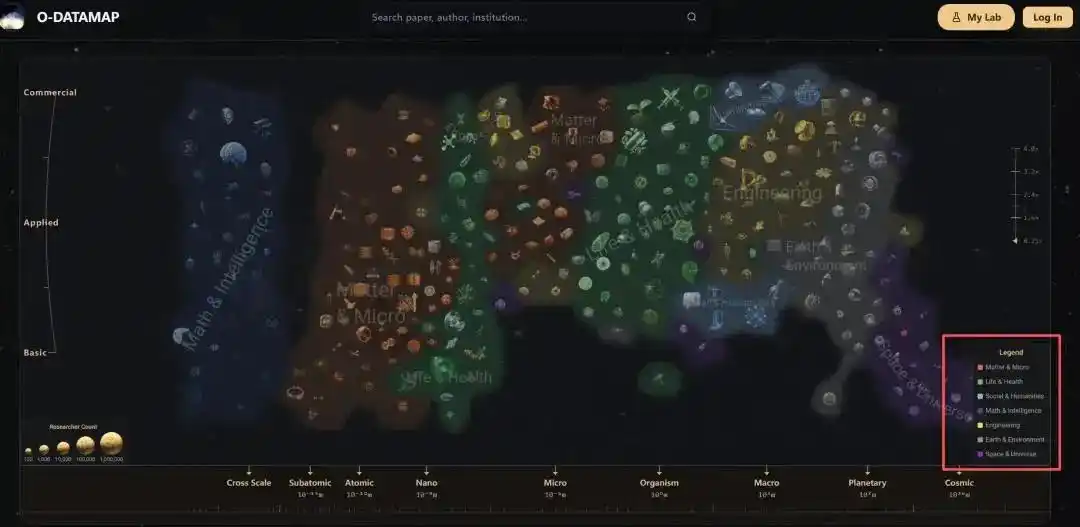 一个科技方向是热是冷,是成熟还是新兴,离应用转化还有多远;甚至一位经典学者、一篇代表论文,究竟在整张科学版图里占据什么位置, 这些过去只能靠经验和直觉判断的事,现在第一次被 O-DataMap 变得足够直观。