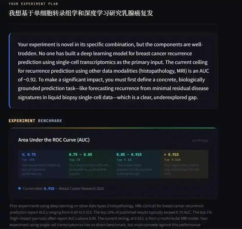 比如,你把这样一个想法告诉 AI:基于单细胞转录组学(scRNA-seq)+ 深度学习,预测乳腺癌的复发。