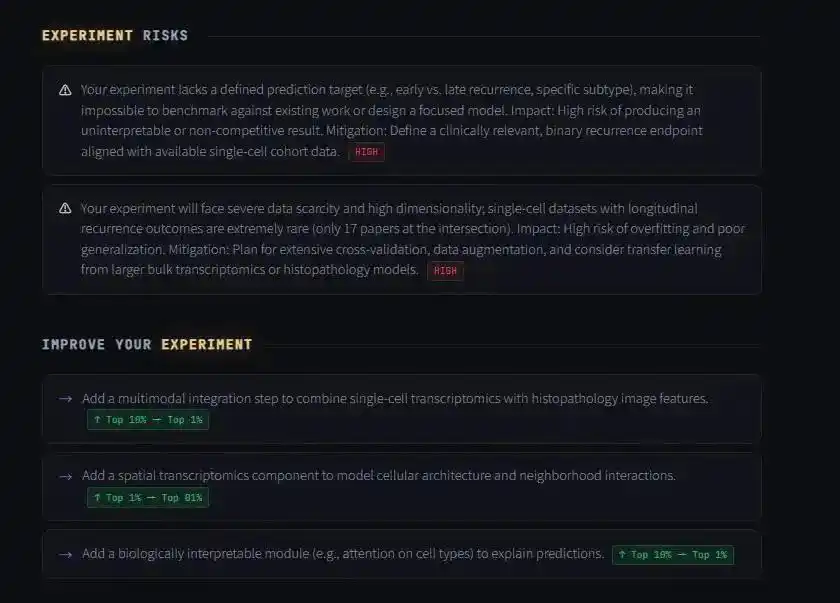 过去,你是先做,再知道这条路坑不坑。现在,AI 把导师的直觉、专家的判断,转化为一种可计算、可调用、可进化的能力,在真正投入时间、人力和经费之前,研究者第一次有机会先看清自己站在哪里, 是机会,还是陷阱;该重仓押注,还是谨慎绕行。